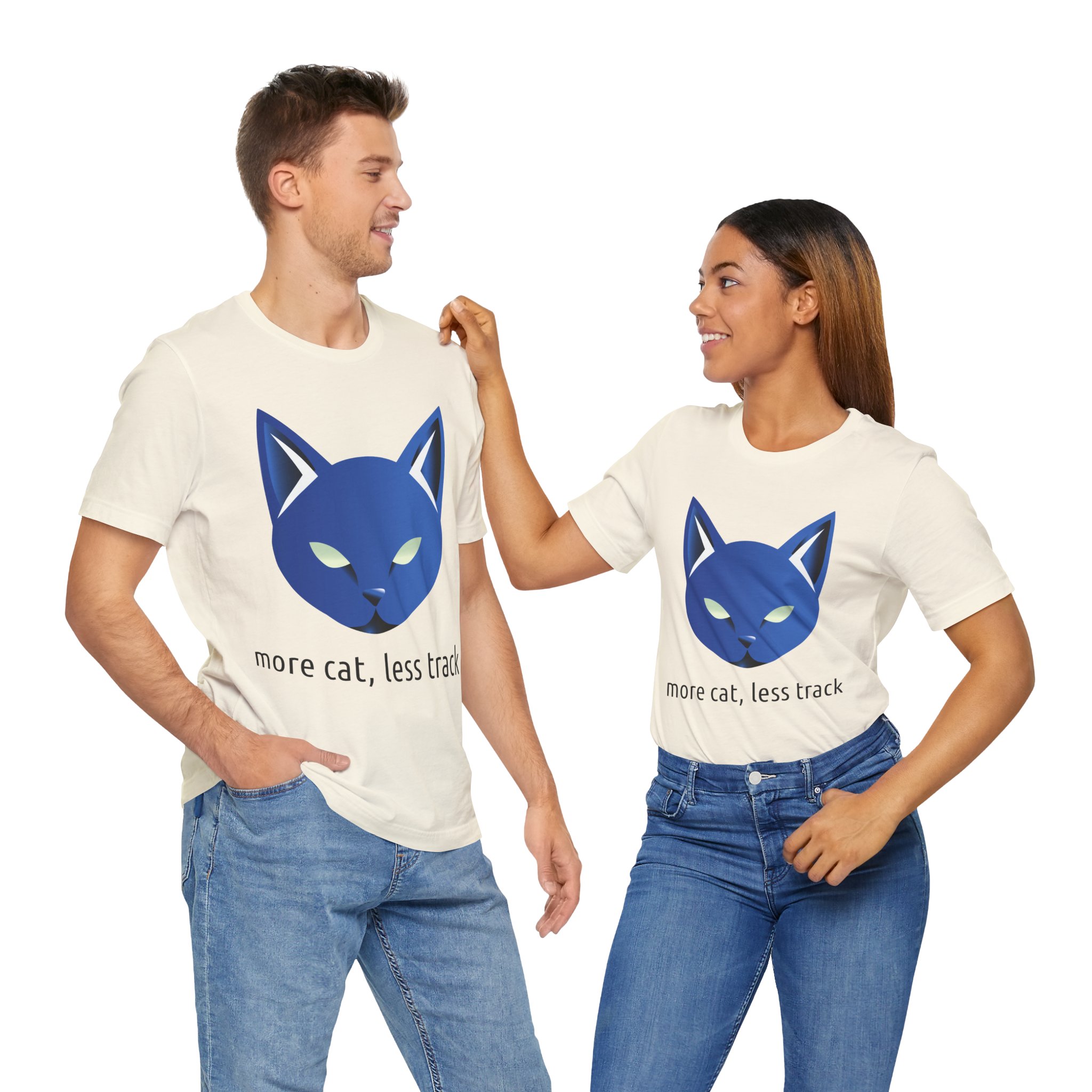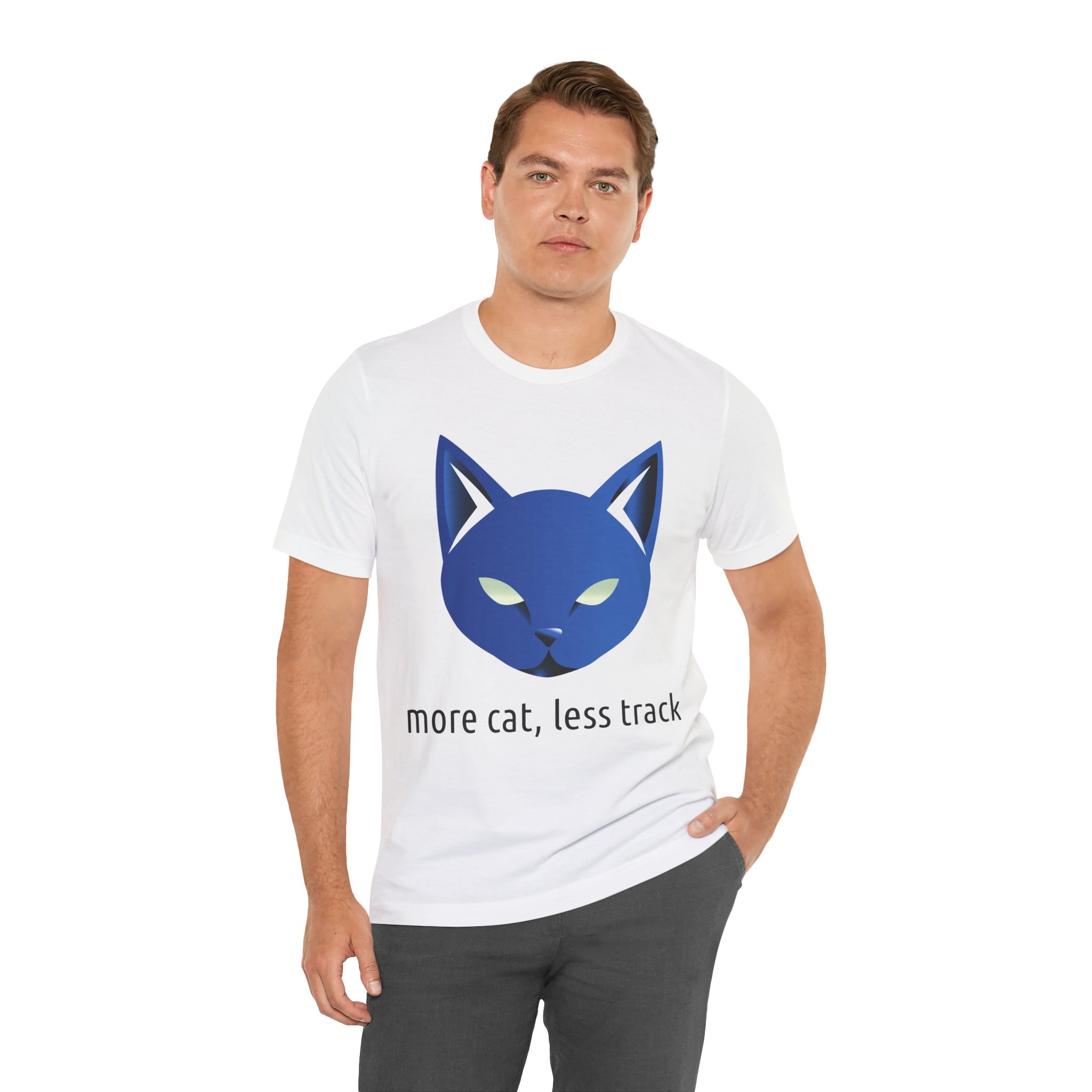 In einer Welt, in der jeder Klick verfolgt wird, ist es Zeit, ein Zeichen zu setzen. Unser T-Shirt „more cat, less track“ ist nicht nur ein Kleidungsstück, sondern eine Haltung. Es ist für die Digital Natives, die Entwickler, die Datenschützer und für jeden, der das Internet für das liebt, was es sein sollte: ein Ort für Kreativität, Wissen und natürlich – Katzen.